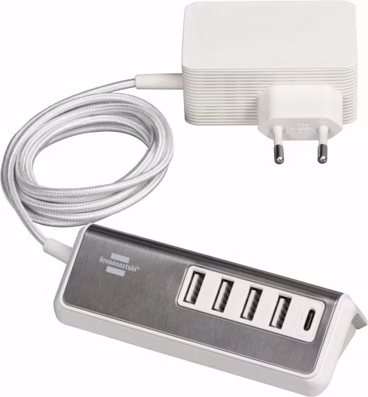 - Inkluderar 1x brennenstuhl®estilo Fast USB Charging Station med totalt 5 USB-laddningsportar och 1,5 m textilklädd kabel och högkvalitativ yta i rostfritt stål - i bästa brennenstuhl®-kvalitet