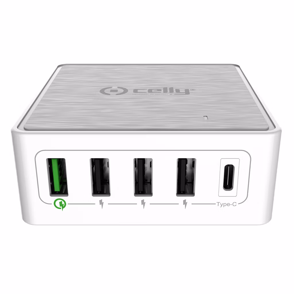 ProPower Powerstation har 5 portar som med gör att man snabbt kan ladda 5 enheter samtidigt på skrivbordet. Tack vare Power Delivery-tekniken (PD) kan man ladda sin smartphone, surfplatta, MacBook och bärbara datorer på mindre än en timme* via den dedikerade USB Type-C-porten (upp till 60W). För att dra full nytta av Power Delivery-tekniken, använd laddaren tillsammans med USB-typ C-kabeln i ProPower-serien. Ladda två enheter samtidigt med maximal hastighet tack vare den andra porten, en Quick Charge 3.0 USB-port (upp till 18W). Kontrollera kompatibilitetslistan på www.qualcomm.com.