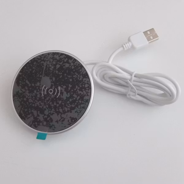Gör om ditt skrivbord, arbetsplats eller soffbord till en trådlös laddare för din mobil. Monteras enkelt i 60mm diameter hål.
