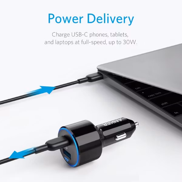 Anker mobilladdare för bilen med USB-C och PowerDelivery upp till 30W