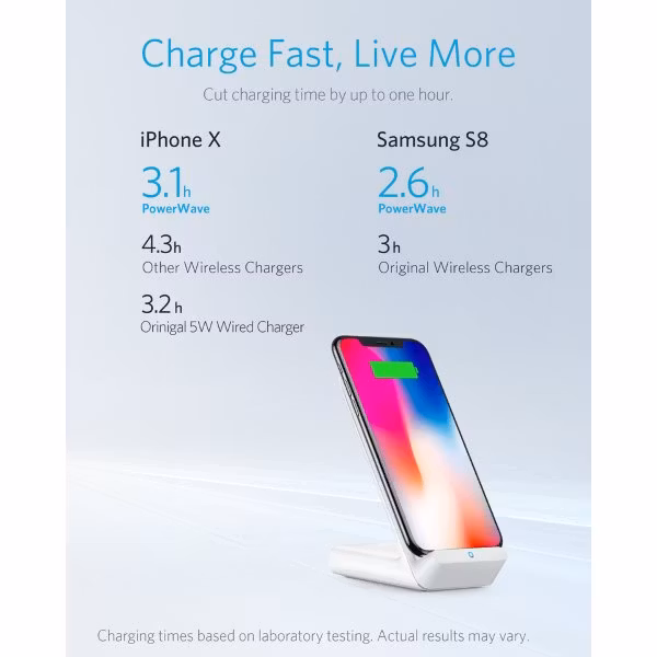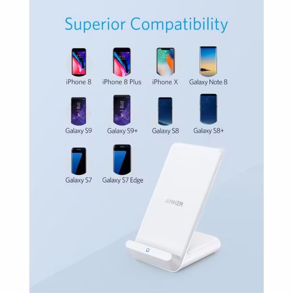 Ankers senaste och snabbaste trådlösa mobilladdare för alla mobiltelefoner som kan laddas trådlöst med Qi-standarden.