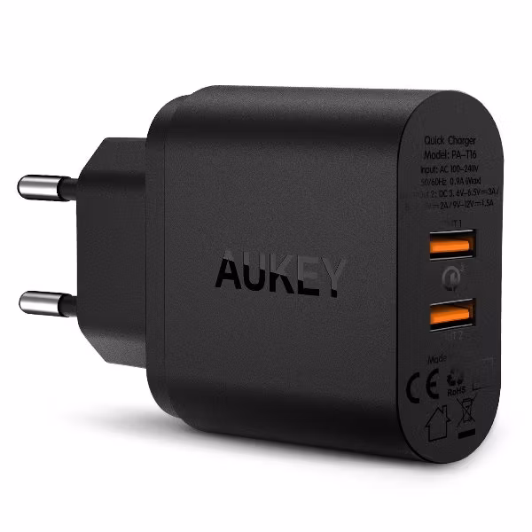 Aukey mobilladdare - 2 uttag & Quick Charge 3.0