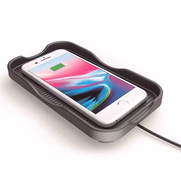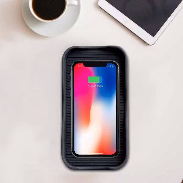 Laddarens kanter och mjuk silikonyta håller telefonen på plats även om laddarn står ojämnt eller är i rörelse. Perfekt att ha i bilen.