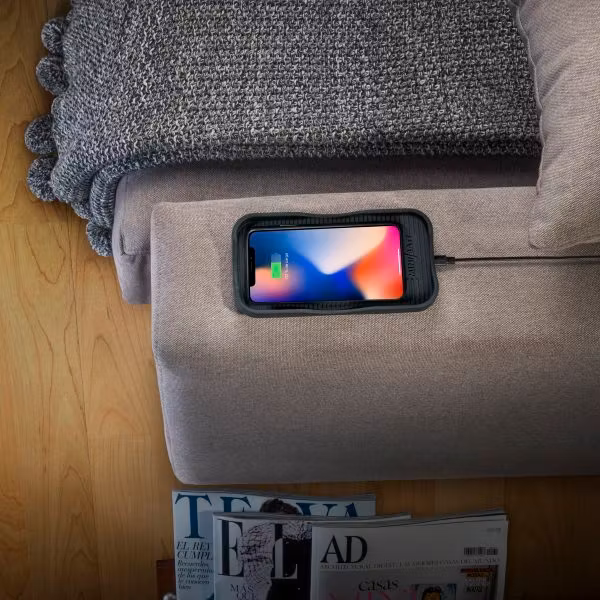 Även bra att ha i soffan - laddaren fungerar på ojämna och mjuka underlag.