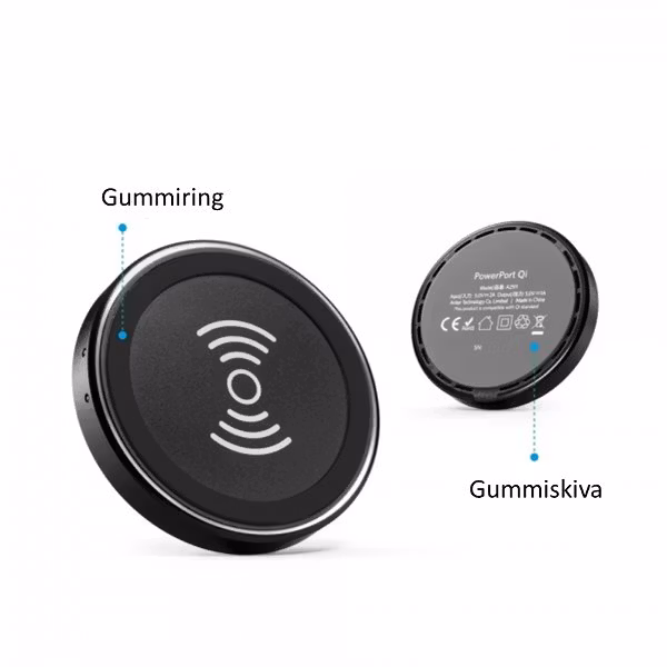 Obs. Fungerar endast med telefoner som antingen har Qi laddning inbyggt eller som har ett skal eller liknande för Qi-laddning.