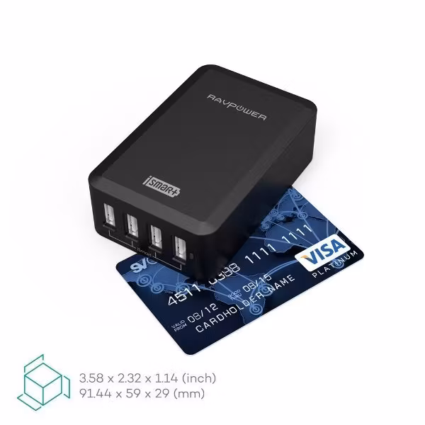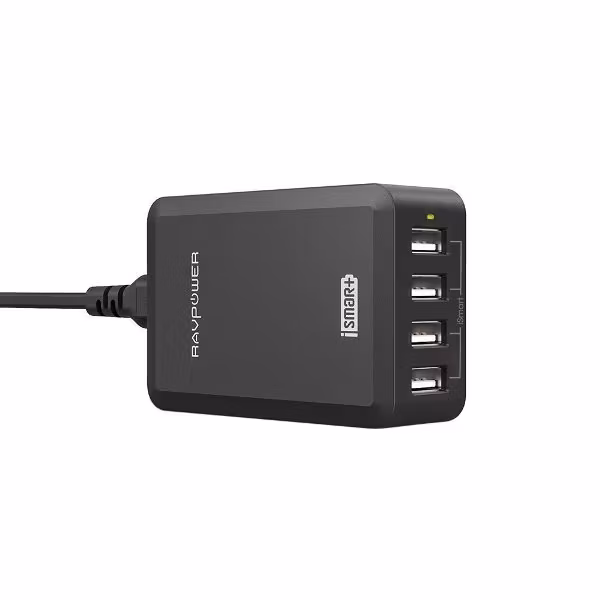 Mobilladdare med 4 uttag från RAVPower för laddning av 4 mobiltelefoner, surfplattor och andra enheter. 2,4A per uttag eller upp till 8A totalt. Läs mer.